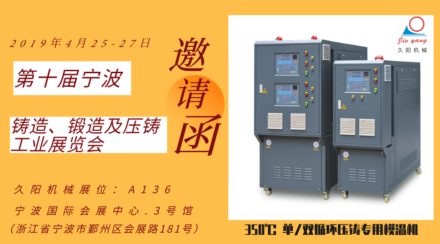 銷售熱線:13923865819 服務(wù)承諾2019第十屆寧波鑄造、鍛造及壓鑄工業(yè)展覽會將于4月25日~27日在寧波國際會展中心3號館隆重舉行。作為浙江省唯一的鑄造行業(yè)盛會,本次展會共有國內(nèi)180多家展商展示最新的技術(shù)和設(shè)備,展覽面積近1萬平方米,達(dá)歷史最高水平。深圳市久陽機(jī)械設(shè)備有限公司作為壓鑄行業(yè)知名模溫機(jī)廠家…